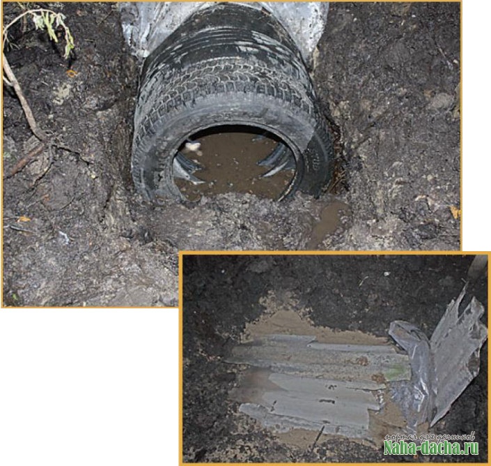 В отличие от специальных дренажных труб, которые стоят весьма недёшево, старые покрышки в любом шиномонтаже вам отдадут совершенно бесплатно — лишь бы их кто-то забрал, чтобы не пришлось платить за утилизацию.