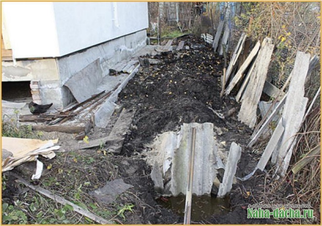 дренажУровень воды рядом с домом после устройства дренажной канавы.