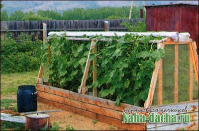Мини- и максизащитаТак называемые русские парники почти не возвышаются над землей, обогреваются они натуральным биотопливом. Размещать парник нужно на светлом сухом месте, защищенном от холодных ветров. Осенью копают котлован глубиной 75 см. Поверх котлована кладут венец из бревна диаметром 12-14 см (или деревянный короб). Южная сторона должна быть на 10-12 см ниже северной для лучшего освещения и стока воды. Размер рам — 160x106 см, толщина стекла — 1,5 мм.