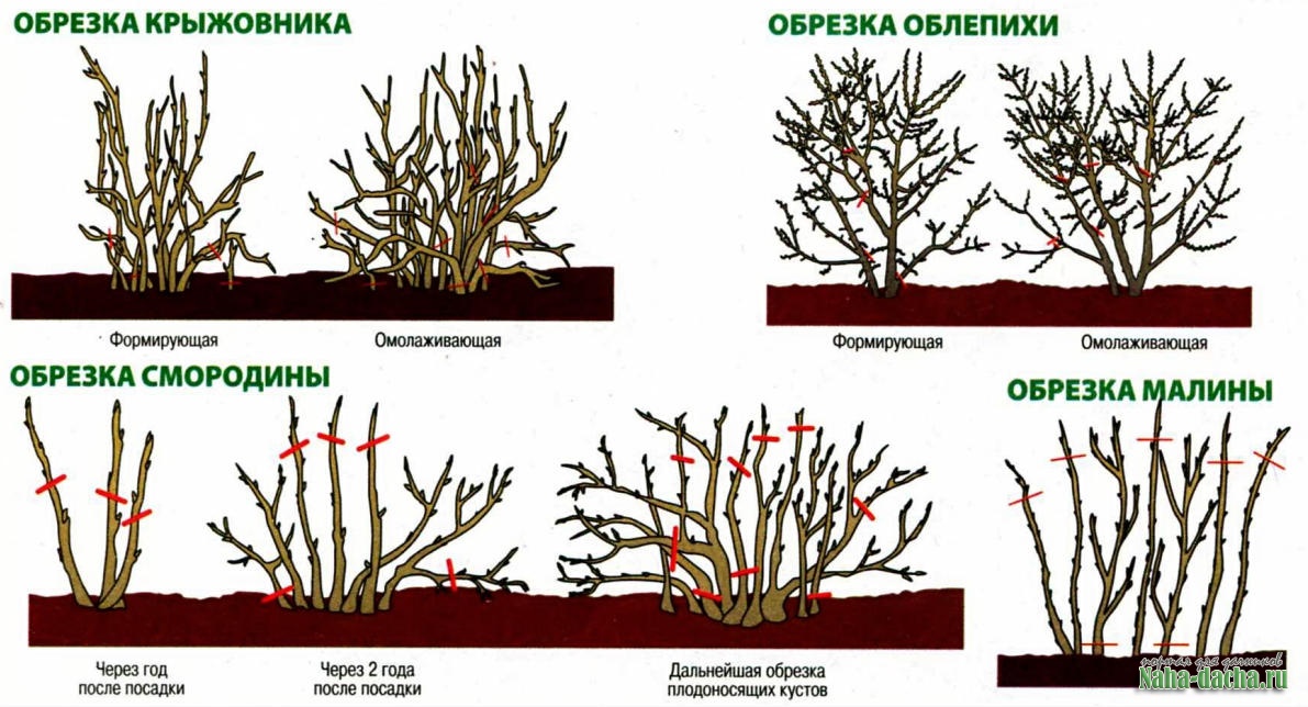 КРЫЖОВНИКВ 1-й год у крыжовника обрезают однолетние приросты на 2-8 почек. Во 2-й год однолетние приросты у него укорачивают до половины. В 3-й и 4-й год удаляют всю свежую корневую поросль, за исключением 3-5 мощных побегов, у которых лишь подрезают верхушки. С 5-го года начинайте убирать вместе с лишней корневой порослью истощенные 5-летние ветви. Заканчивается формирование куста, когда в нем наберется 15-20 веточек.