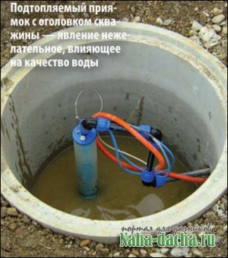 * Приямок — шахта глубиной в два колодезных кольца, обеспечивает положение оголовка скважины ниже уровня промерзания грунта. Внимание: такое устройство неприемлемо в случае высокого положения грунтовых вод, так как оголовок будет затопляться в половодье и в дождливые периоды.