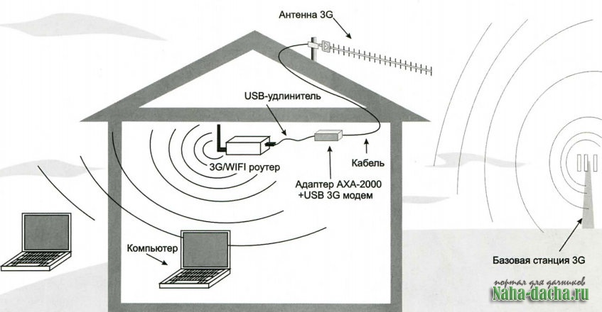 Наиболее популярный способ — установка направленной антенны, в случае необходимости закрепленной на мачте, на крыше дачи. При помощи специального переходника эта антенна соединяется кабелем с модемом. Кстати, этим же методом можно улучшить и связь посредством мобильного телефона, но пользоваться одновременно и телефоном, и Интернетом не получится. Этот способ лучше всего применять в тех случаях, когда у вас всего одно устройство с выходом в Интернет.