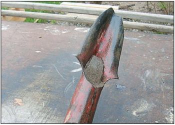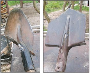 У нас в хозяйстве «прижились» лопаты двух типов: имеющаяся в продаже так называемая шведская - самый удобный инструмент для любых работ с землей, песком, даже щебнем (фото слева), и несколько модернизированная обычная штыковая лопата (мы ее называем «детско-женской»). Когда у нее появилась трещина в лезвии, пришлось болгаркой срезать скругления и несколько уменьшить общую площадь лезвия (фото справа). В результате такой лопатой намного легче копать и, не слишком перенапрягаясь, переворачивать небольшие комья земли.