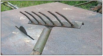 Грабли, сделанные по рекомендации Д.Миттлайдера, шириной 40 см, применяются для формирования узких грядок. Одной стороной рыхлим почву, другой ровняем и формируем бортики. Но оказалось, что такие облегченные грабли на длинном черенке вообще гораздо удобнее обычных широких при любых работах и в саду, и в огороде.
