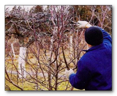 2. До вступления деревьев в пору плодоношения проводят формирующую обрезку. Удаляют конкурентов на центральном проводнике, вертикальные ветви около скелетных ветвей. Острые развилки переводят на боковую ветвь. Вертикально растущие ветви на периферии кроны обрезают на боковую ветвь, по возможности горизонтальную.
