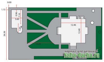 В случае реализации этого плана озеленение участка потеряло бы смысл, так как «разрезание» его мощением на отдельные небольшие фрагменты лишает возможности создать целостную композицию и выделить основной объединяющий элемент (в данном случае роль такого элемента выполняет газон). Сократив площадь мощения и изменив в разумных пределах схему коммуникаций, удалось выделить композиционный центр (газон), который объединил все запланированные посадки:
