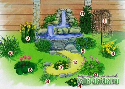 Все отверстия меж валунами кропотливо заделыват цементным раствором, подготовленным с добавкой спец минеральных ингредиентов, жидкого стекла или клеящих средств ПВА. После того как каскад будет выложен до верхнего уровня, там создают накопитель. Внутренность водоема и все сосприкасающиеся с водой плоскости гидроизолируют.