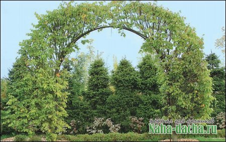 Для создания таких арок подойдут древесные породы, ветви которых поддаются формовке, хорошо гнутся и переносят стрижку. Кроме уже указанных и, пожалуй, самых популярных липы мелколистной, рябины обыкновенной и березы повислой для этой цели можно использовать желтую акацию, боярышники, ивы. Подойдет и лиственница, которая хорошо стрижется.