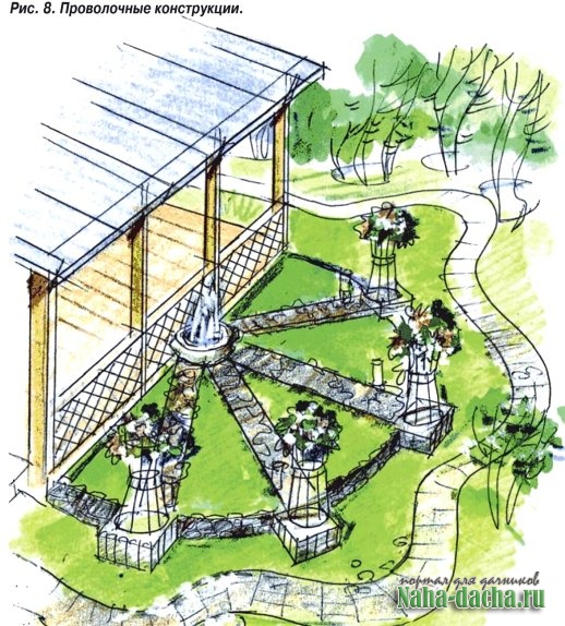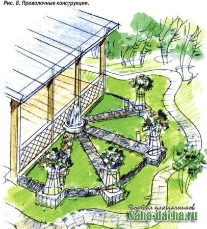 озеленение садаДругие варианты применения трубчатых конструкций показаны на