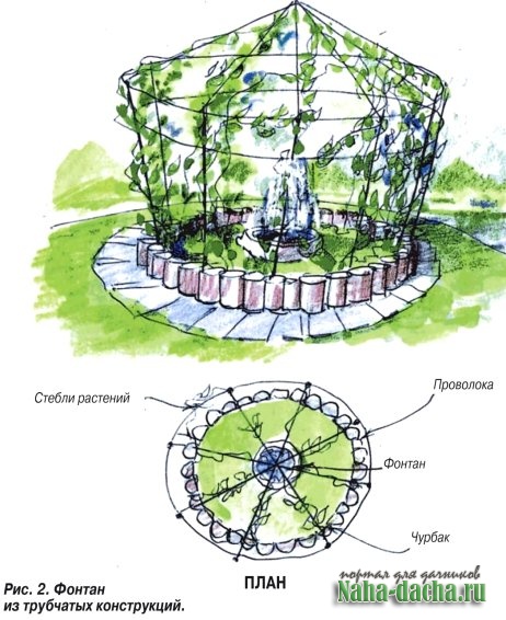 (рис. 2). Декоративная ценность фонтана увеличится, если к каркасу подвесить несколько светильников.
