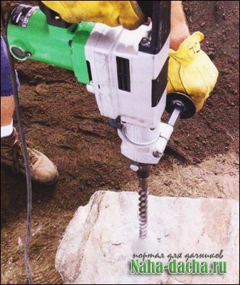 как просверлить каменьПрактически любой камень можно просверлить, за редким исключением. Вам понадобятся дрель с перфоратором и алмазное сверло диаметром 25 мм нужной длины. Сверление займет несколько минут. Учтите, что это очень шумный процесс, кроме того, при сверлении могут разлетаться в стороны мелкие обломки. Поэтому наденьте очки и вставьте беруши. Не нажимайте на дрель, она просверлит камень под собственным весом. Через каждые пару сантиметров вынимайте сверло и счищайте пыль. Если камень круглый, положите его в ямку, чтобы он не шатался. Сверло может соскальзывать в с поверхности в самом начале, в этом случае просверлите предварительное отверстие около 1,5 см в глубину.