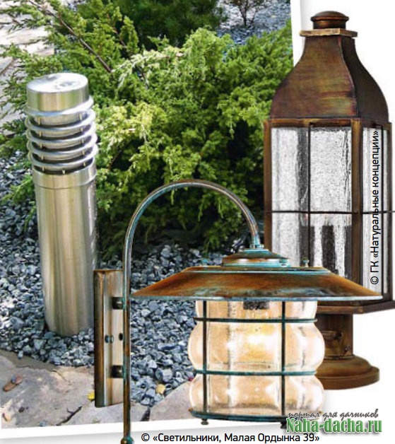 ландшафтное освещениеЗаступая на вечернюю вахту, садовые светильники превращают обычный участок в сказочную страну, но и днём не уходят со сцены. Выполненные в том же стиле, что и дом, а также дворовые постройки, они становятся значимым элементом архитектурного декора. Ведущие компании предлагают приборы на любой вкус и кошелёк; среди производителей наиболее интересных коллекций следует назвать фирмы Ares, Arte Lamp, Brilliant, Fonderal, iGuzzini Massive, Royal Botania, Elgo, Kolarz, Philips, Hinkley, Snowlight, Unique Lighting, «Русские фонари», «Светлый город».