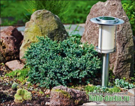 Популярность приобретают низкие садовые светильники на солнечных батареях. Для их размещения не требуется проводить подготовительные работы (достаточно поставить на выбранное место или воткнуть в грунт пластмассовый стержень), поэтому световую композицию можно многократно менять.