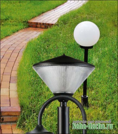 Усилить рассеивание цилиндрических светильников помогают прозрачные кольца с рельефной поверхностью. Закреплённые на столбах и стенах построек прожекторы практичны, так как освещают заданный сектор, причём направление лучей можно регулировать. Однако выглядят эти приборы скромно, даже скучновато. Шарообразные плафоны сферических светильников, напротив, довольно эффектны, а вот практической пользы от них немного, поскольку сам шар в темноте виден хорошо, а близлежащее пространство теряется в сумраке. Компромиссным решением станут полусферические фонари, в которых верхняя часть является отражателем (рефлектором), направляющим световой поток вниз.