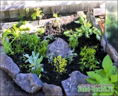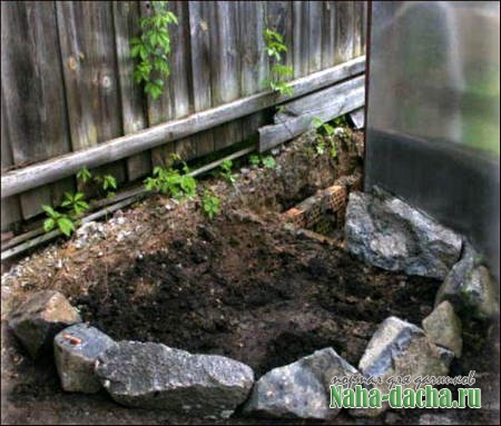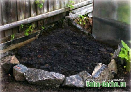 1. Подготовка участка: выровняли, удалили сорняки, обложили I его по периметру камнями, для надежности камни можно укрепить с помощью цементного раствора.