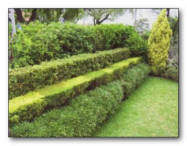Стриженая изгородьЖивые изгороди бывают стриженые (формованные) и свободно растущие. Стриженая изгородь имеет геометрически правильные формы, которые получаются при обрезке растений, например, садовыми ножницами.