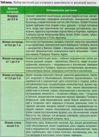 Для свободно растущей изгороди используют породы, которые имеют компактные кроны, красиво цветут и не требуют регулярной стрижки. Среди них можно назвать такие: боярышники и барбарисы, желтая акация - карагана, кизильник блестящий, чубушники, шиповники, весеннецветущие виды спиреи -Вангутта серая, аргута, дубрав-колистная, невысокие виды спиреи - японская, Бумальда; курильский чай (лапчатка), барбарис Тунберга. Неприхотлив и быстро развивается дерен.