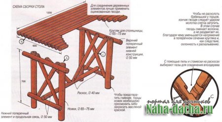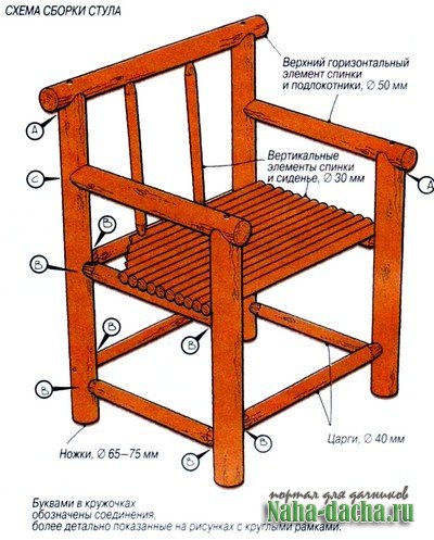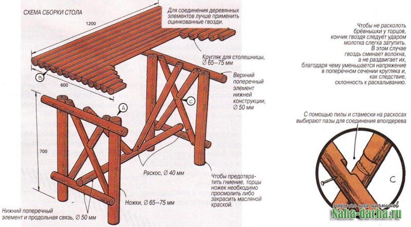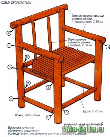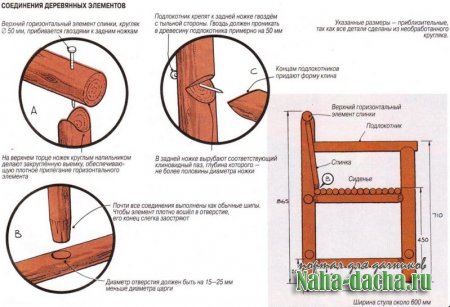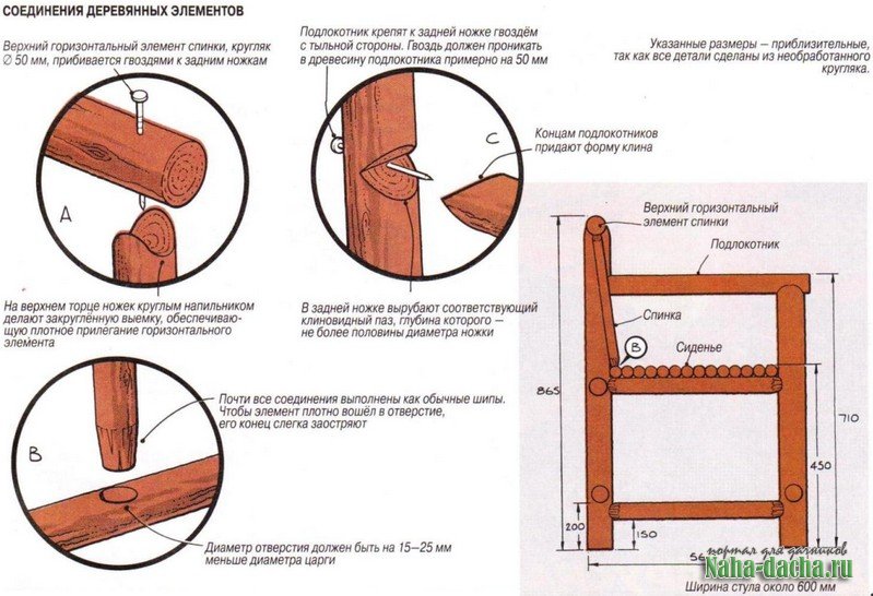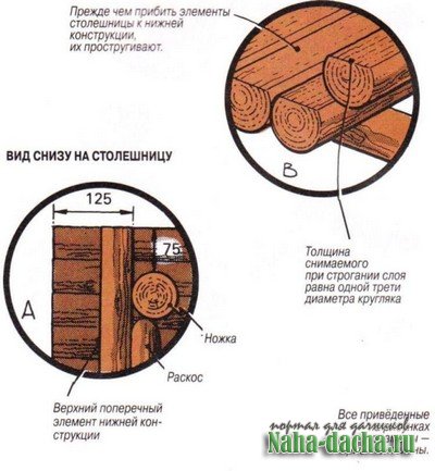 Для изготовления подобной садовой мебели обычно используют толстые ветви и сучки деревьев лиственных пород. Если при этом используются хвойные породы, то для начала следует избавиться от смолы. Например, растворив ацетон в воде в пропорции 1:4, надо при помощи щётки обмыть древесину, затем сполоснуть её тёплой водой и просушить.