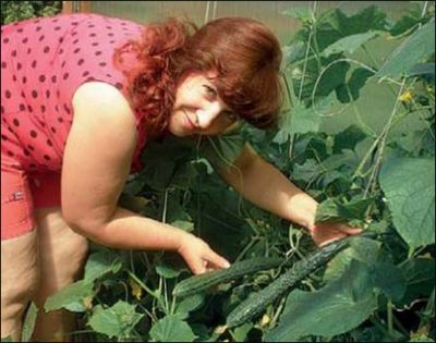 Стараемся, чтобы листья огурцов внизу теплицы как можно меньше касались почвы, а также соблюдалась хорошая проветрива-емость. От посева семян до первых огурчиков проходит примерно один месяц. На растениях преобладают женские цветки, растут они быстро. Урожайность высокая - 30 и более кг с одного растения, в зависимости от того, каких размеров собираешь плоды.