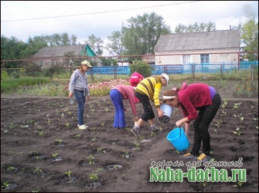 Когда рассада выпустит пятый лист, переношу ее на грядку. Сажаю уже в ямки, которые обычно располагаю в шахматном порядке, чтобы созревающие кочаны чувствовали себя вольготно.