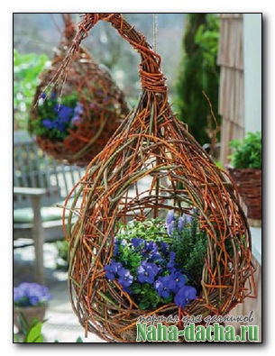 Кашпо для растений Из ивовых прутьев можно изготовить разнообразные аксессуары для сада, например симпатичное кашпо...