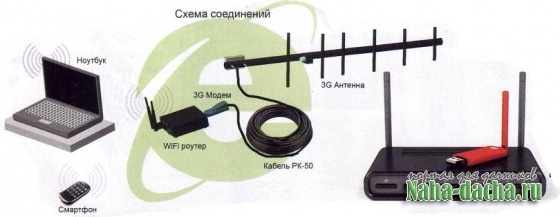 Популярный способ обрести Интернет на своей даче — купить роутер, работающий по технологии 3G. Это устройство — своеобразный гибрид хорошо всем нам знакомых ЗD-модема и обычного сетевого роутера. Получая интернет-сигнал по технологии 3G (или AG) с ближайшей базовой станции, роутер передаёт его посредством Wi-Fi- или LAN-подключения. Такой способ идеален для тех случаев, когда у вас несколько интернет-устройств, работающих от одного оператора. Обязательно изучите все параметры, обратив особое внимание на применяемые технологии передачи данных: разные модели роутеров наиболее эффективно функционируют каждый в своих условиях, и такого плана оборудование надо подбирать исключительно под себя.