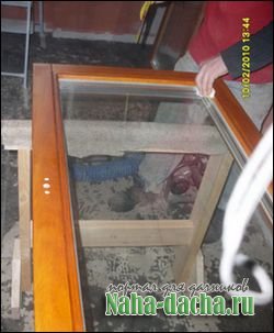 Вставляем новые стекла. Старые были толщиной 2 мм, но сейчас такие практически перестали выпускать, соответственно, найти очень сложно. Вставляем толщиной 4 мм (кстати, бесплатная резка по моим размерам входила в стоимость). Прибиваем штапики.