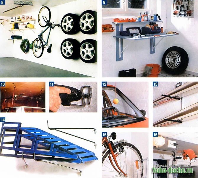 Различные примеры оборудования гаража полезными мелочами самого разного назначения показаны на фото