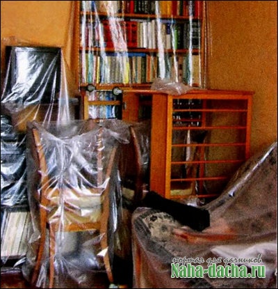 Перед отъездом всю мебель в доме необходимо почистить и накрыть пленкой или тканью.