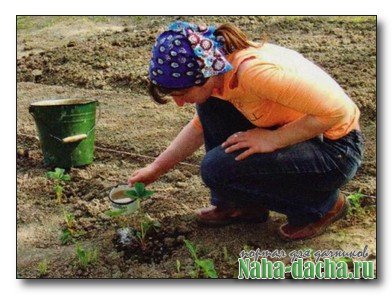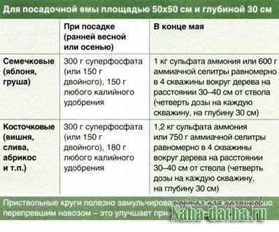 При внесении удобрений очень важно не превышать оптимальную концентрацию минеральных солей в зоне корней, поэтому дозы удобрений рассчитываются по величине посадочной ямы.