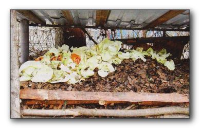 Традиционный компостЛучше, если компост готовится в тенистом, защищенном от ветра и сквозняков месте, находящемся на проницаемой почве, на легком возвышении, чтобы во время дождя на нем не скапливалась вода. Хороший компост получается в случае, если перерабатываемый материал является слегка влажным, а воздух проникает во все его слои. Первым слоем компостной кучи должны быть нарезанные ветки (куски длиной 10-15 см) и толстые стебли трав, слегка присыпанные землей или созревшим компостом. Затем необходимо уложить слоями: накопленные органические отходы (около 20 см), землю (около 2 см), все это пересыпать известкой, доломитом или мелом (2 кг/м3 конусообразной кучи) и наверх уложить такие же слои в той же очередности.