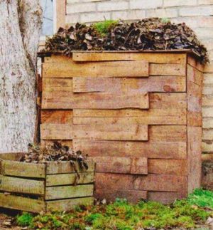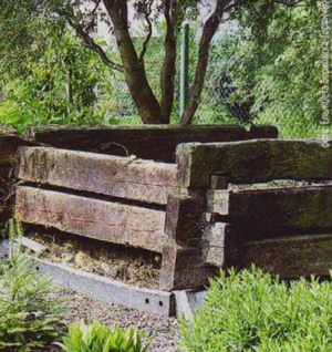 Компостная куча из железнодорожных шпал, которые в случае необходимости можно класть друг на друга или сниматьКОМПОСТ ИЗ ЛИСТЬЕВ