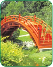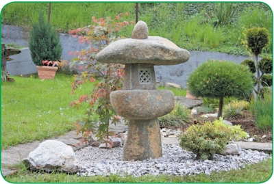 В основном это мостики, скамеечки, изгороди, каменные фонари, башни, фонтанчики и вазы. Мостики делаются из камней, уложенных на дно водоема, или из бамбука над водой. Каменные фонари размешают в различных местах сада: возле водоемов, вдоль тропинок, возле мостиков. Количество и размер фонарей зависят от ваших предпочтений. Традиционный элемент японского сада -тсу-кубаи. Это каменная церемониальная чаша с водой в виде бочки высотой 20 - 30 см. Ее располагают на низкой ровной небольшой площадке перед каменной стеной, живой изгородью или в центре сада, а рядом устанавливают каменный фонарь.
