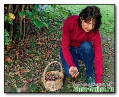 ДОМАШНИЙ ОРЕШНИКЛещина растет в виде многоствольного кустарника. В природе отдельные тонкие стволы высотой до 4-5 м окружены массой молодых побегов. Если корневую поросль удалять, то можно сформировать деревца со стволом примерно в руку толщиной. Однако намного легче собирать урожай с молодых кустов, гибкие ветви которых можно пригнуть, не ломая. Обычно в кусте оставляют 6-8 побегов, замещая их порослью по мере старения. Разумнее выбрать место для орешника на краю участка, у забора, около хозяйственной постройки или беседки, где его молодая поросль не превратится в серьезную проблему, а густая тень не станет помехой для соседних культур.