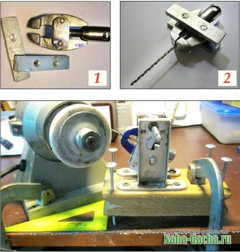 Заточить сверло вручную, не имея навыков и опыта, сложно. Чтобы справиться с этой задачей, из подручных материалов собрал специальное приспособление.