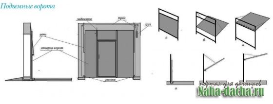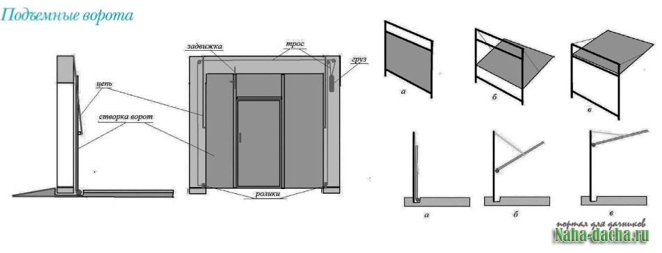 Внизу с наружной стороны ворот закрепил дверную ручку, потянув вверх которую, легко открываю створку. Принцип работы показан нарис. 2.