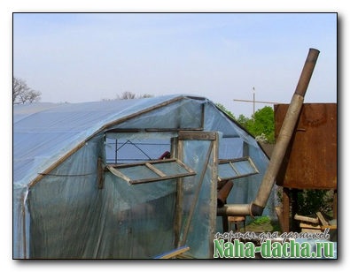 теплица своими рукамиИтоговый экзамен на эффективность теплица прошла в ноябре. В Питере на две недели установилась морозная погода со средней температурой минус 4°, в теплице же она ниже 2° не опускалась. Только когда ночью на улице ударил мороз 18°, в теплице термометр показал минус 2°. Правда, это уже со слитой водой из бочек. Этот экзамен позволил предположить, что весной уже в апреле теплице не будут страшны никакие заморозки и можно будет высаживать рассаду на месяц раньше, чем в обычной теплице. Таким образом, удалось увеличить вегетационный период на 60 дней (месяц весной и месяц осенью). А в условиях северо-запада это очень много!
