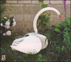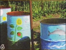 Сейчас многие украшают палисадники лебедями, сделанными из автомобильных покрышек. Я тоже приложил к этому виду творчества руки, но, будучи реалистом, постарался сделать резиновую копию как можно более похожей на живой оригинал (фото 5). Полигоном же для своих художественных экспериментов выбрал бочки для воды (фото 6). Насколько хорошо получилось, судить читателям!