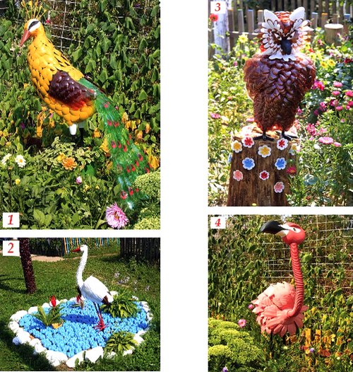 Яркие экзотические птицы, изготовленные из пластиковых бутылок, стали настоящей изюминкой моего участка.
