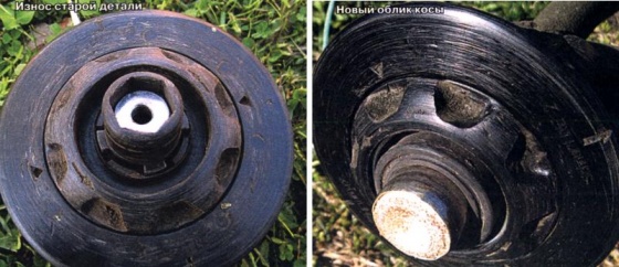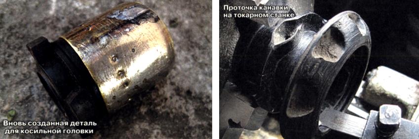 Удачное решение в течение следующего часа было повторно реализовано на второй изношенной косильной головке. Теперь есть у меня запасная, и не за 900 рублей!