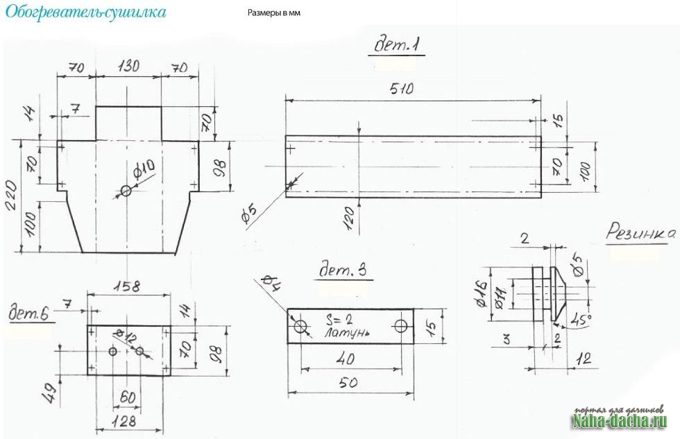 По разметке в каждой заготовке просверлил отверстия под болты М8, собрал корпус обогревателя и установил в него два воздушных ТЕН а (фото 1).
