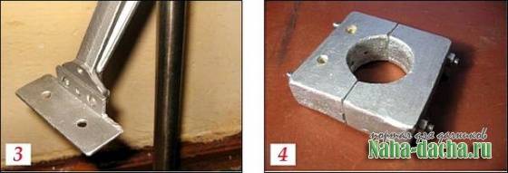 ■ На держателе (фото 3) закрепил болтами металлический уголок размером 80x50 мм для деревянного фиксатора (фото 4), зажимающего сверлильный механизм.