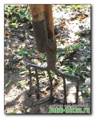■ На получившейся лопате по стандартной схеме закрепил деревянный черенок (фото 1) нужной длины.