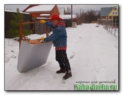 ■ С помощью такой лопаты можно не только чистить дорожки, но и перевозить снег по участку.