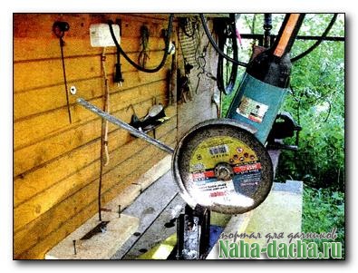 4. Из отрезков труб (профильной сечением 25x25 мм и круглой d 25 мм) изготовил ручку-упор и закрепил ее болтом в держателе.