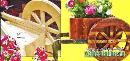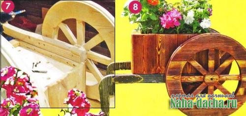 Так, старая тележка может в считанные секунды превратиться в отличный садовый контейнер для невысоких растений. Если старой тележки нет, можно смастерить новую. Придать ей благородный «состаренный» облик поможет технология искусственного старения древесины.