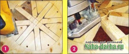 2. С помощью фрезы с насадкой для формирования профильных кромок обработайте края обода колеса. А пазовой (шпоночной) фрезой уменьшите толщину спиц на 10 мм.