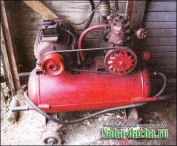 Предлагаемый агрегат (фото 1-3) отличается быстротой и мощностью: давления в 10 Атм он достигает буквально за несколько минут. Такого результата я добился, подбирая соотношение диаметров шкивов. Как известно, чем выше обороты, тем быстрее получаем максимальную мощность. С большим шкивом мотору легче, зато давление поднимается медленней.