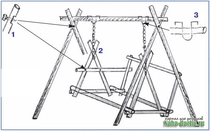Самое опасное место это место сопряжение перекладины и сидения. Если отнестись не серьезно можно здорово пострадать. Поэтому смотрим как сделано на чертеже.