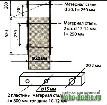 Опишу, как мастерили журавлей у нас в деревне. Раньше наши старики искали в лесу дерево с развилкой -оно шло на основную мачту. В балансире (жерди) делали отверстие, вставляли в него втулку и крепили на развилке. Теперь такое дерево не ищут - поступают проще: крепят на основание (на мачту) стальные пластины.